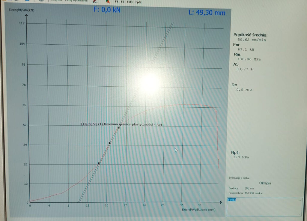 - Wytrzymałość na rozciąganie (Rm): 436,06 MPa